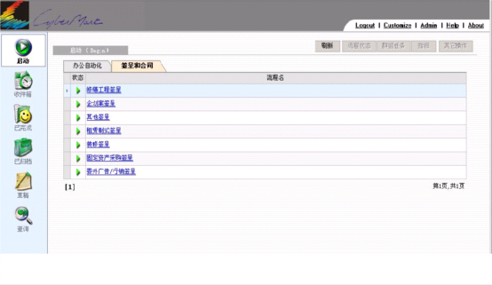 ( 4 ) 流程内容查看 :案件发出后可以在以完成里查看你的发出案件;若是最后一个审批者,这时你因该改选 归档 即可见你审批的案件;