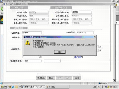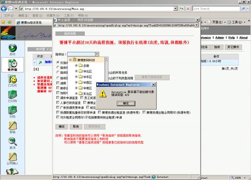 Q:当我指派时选择指派人或者选择职务代理人的时候出现如下错误,怎么处理?