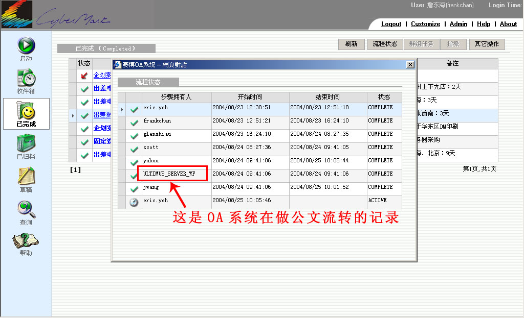 A: 这是OA系统在做公文流转的记录
