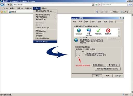 2、IE7.0:如下图设置安全级别
